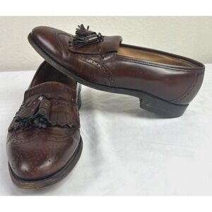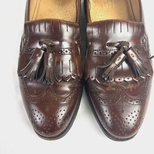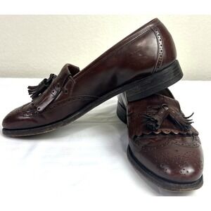 Johnston & Murphy Optima Sz 9.5 C Brown Leather Tassels Wing Tip Slip On Preppy