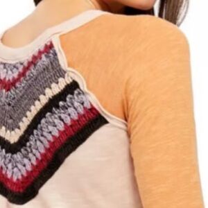 Free People We The Free Spring Bound Crochet Long Sleeve, Chic top with tan neckline. Size Large