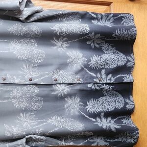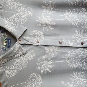 Campia Hawaiian shirt. Featuring a tropical print, of grays and blues.