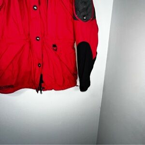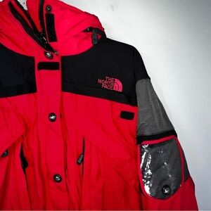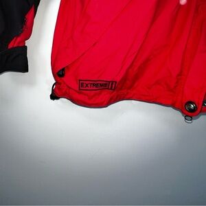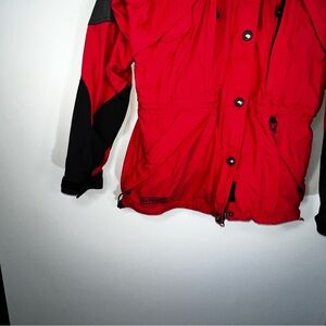 Women’s The North Face Extreme Gear, Snowboard Ski Jacket Size 8 Red And Black. Please see photos as the jacket does show signs of where to the right sleeve with two small tears and a stain to the front left pocket.