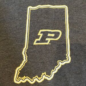 Dark gray short sleeve tee with Purdue logo. Soft and stylish. Ideal for casual wear. Unisex XL