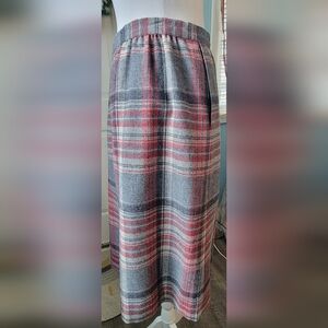 Vintage Pendleton A-Line 100% Virgin Wool Midi Skirt Womens 34 Gray Red Plaid Preppy