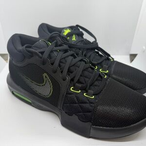 Nike LeBron Witness VIII shoes. Black/White Volt. Durable and stylish.