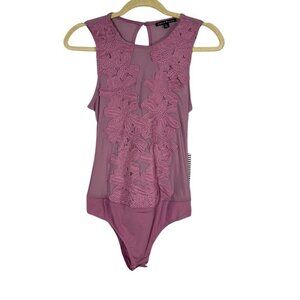Floral Mesh Bodysuit Pink L Feminine Coquette Chic Glam Boho Western Preppy 80s