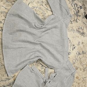 Aqua Black and White Striped Pants