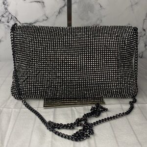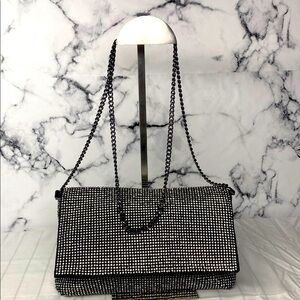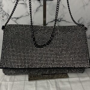 Topshop Diana Diamante Clutch Bag -Elegant Black and Silver Women's Bag