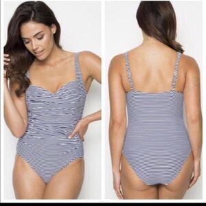 Nip Tuck Women's Navy Sorrento Stripe Joanne Twist Front Tummy-Control swimsuit