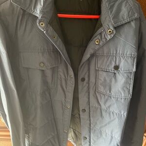 Warm and lightweight puffer. Features buttoned pockets. Ideal for cold weather.