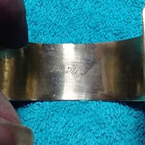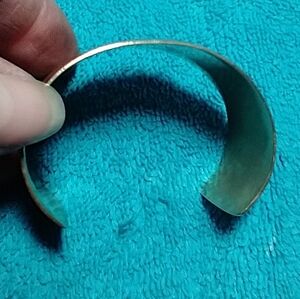This stunning bracelet features an intricate floral design in gold green and red. Perfect for adding a touch of elegance to any outfit. shows some age.