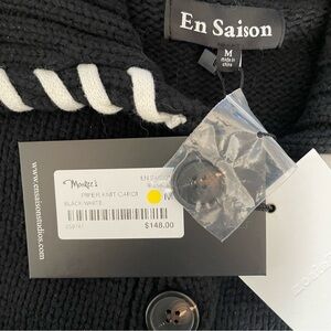 En Saison Piper Whipstitch Black & White Cardigan Sweater Women’s Medium NEW