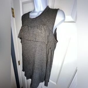 NWT Elan Women’s Large Gray Ruffle Long Sleeve Cold Shoulder Blouse Top MD1726 L