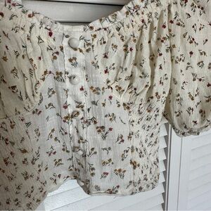 Princess Polly Smocked Floral Puff Sleeve Crop Top Cottagecore Peasant XS
