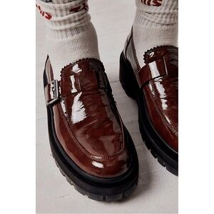 Free People Mackenzie MJ Patent Leather Loafers Brown EU 39 US 9 Classic Preppy