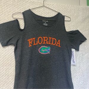Boxer craft Womens Florida Gator Football T-Shirt Gray Orange Open Shoulder NWT