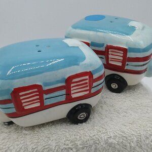 Travel Trailer Happy Camper RV Retro Ceramic Salt & Pepper Shakers