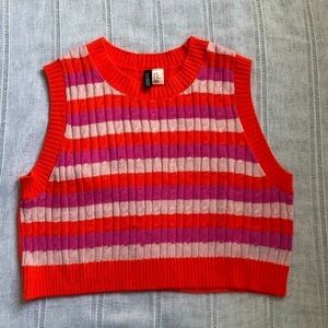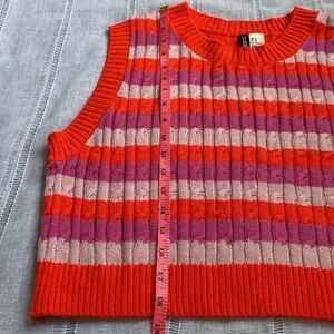 Such a fabulous piece for winter! Bright orange and pinks in a stripped pattern on the front. Solid organs in the back. Looks brand new! Size XL. Crew neck and cropped style. Wear it with layers or an oversized dress shirt.