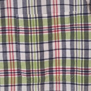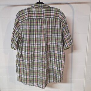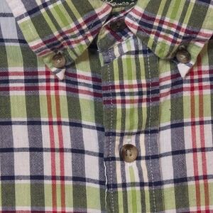 Eddie Bauer Plaid Short Sleeve Button Up Shirt Green Red Navy Mens L Tall Casual