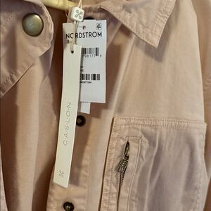 Chic jacket by Caslon. Features a light pink hue. Multiple pockets for functionality. Ideal for layering. Women’s size small. New from Nordstrom’s.