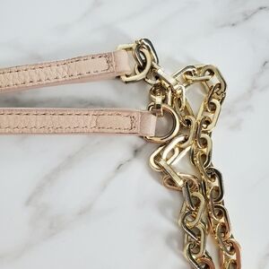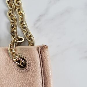 Tory Burch Britten Pink Pebbled Leather Chain Shoulder Bag Iconic Double T