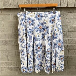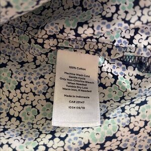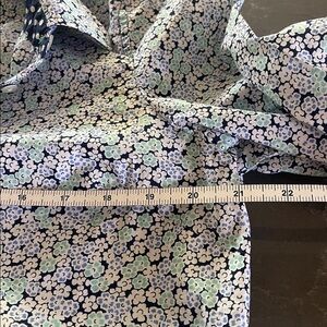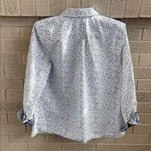 Super cute Talbots shirt with a blue floral pattern. Features a polka dot collar and cuffs for added style.