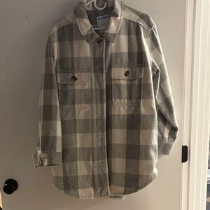 Old Navy Plaid Soft Brushed Utility Shacket Button Gray Jacket Womens