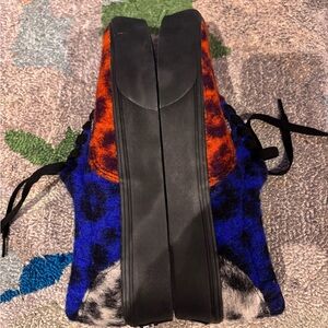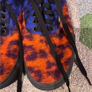 Vans Era Platform Felt Fuzzy Mix Leopard Multi/Black Bold Vans sneakers with striking blue and orange design. Black laces and soles add contrast. Very cool collector’s item.