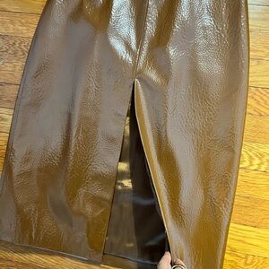 Elegant brown midi skirt. Sleek design. Perfect for any occasion.