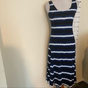 New with tags LRL Dress in a navy blue and white stripe tie-dye design