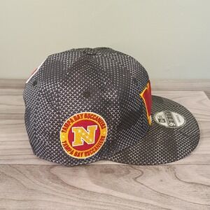 New Era 9FIFTY Snapback Hat featuring a Washington Commanders "W" logo embroidered on the front with a Tampa Bay Buccaneers patch on the side. This cap appears to be a mixed-logo mashup or a miss printed hat. We received it pre-owned as well so we are not sure.