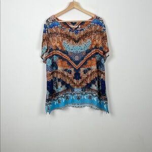 Soft Surrounds Sharron Short Sleeve Artwear Women's 1X Multicolor Bohemian Pullover TunicTop.
