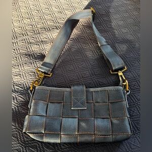Harveys Denim Blue Original Seatbelt Bag, Baguette shape with Gold Hardware