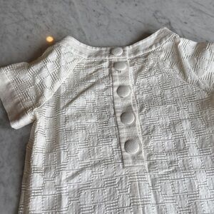 Boat neck cream color mini shift dress. Good used condition. Adorable large back buttons. Side zipper.