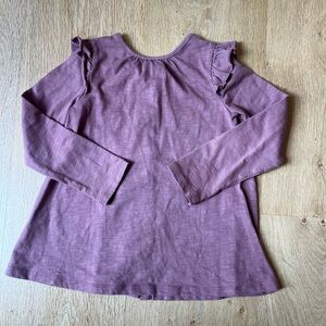 Adorable kids' long sleeve top with ruffled shoulders. Perfect for any occasion. Adorable over the leopard leggings. Shirt buttons all the way down. Hardly worn