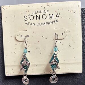 Charming dolphin earrings by Sonoma. Features teal accents and silvertone swirls. Ideal for a playful touch.