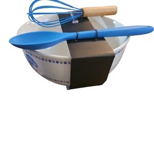 NFL themed bowl with blue and white design. Includes matching blue whisk and spoon. Perfect for game day.