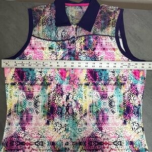 EP New York Pink Colorful Sleeveless Golf Polo Shirt Mesh Detail Women’s Large