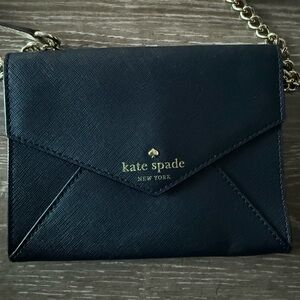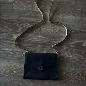 Chic black crossbody bag by Kate Spade. Features elegant gold chain strap. Perfect for day or night. 6.5 x 5. Used once for a few hours.