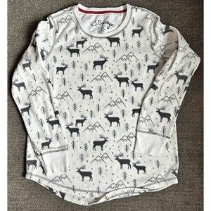 PJ Salvage Fleece Top Pajamas White Moose Winter Outdoors Long Sleeve Sz M