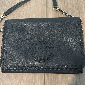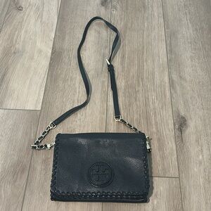 Good condition authentic Tory Burch leather crossbody purse, Marion combo black leather small