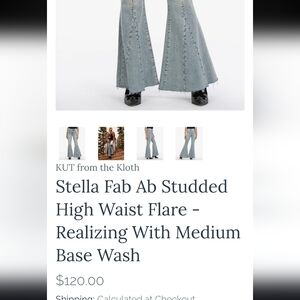 NWT Kut From the Kloth Stella Fab Ab Studded High Rise Waist Flare Realizing with Medium Base Women 12