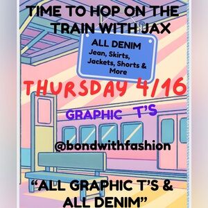 ALL GRAPHIC T’S & ALL DENIM TRAIN SHOW THURSDAY 4/16 8AM -12AM EASTERN TIME
