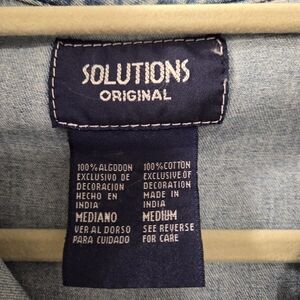 This vintage women's denim shirt features a charming embroidered farm scene. So fun! Good pre-loved condition, but missing one button. And two slight callouts in the pics.