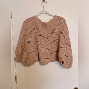 Elodie Cropped Scalloped Hem Open Knit Bat Wing Pullover Sweater in Small
