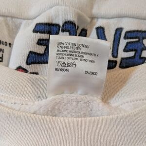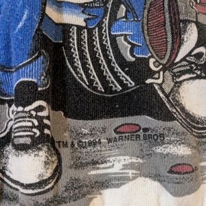 Vibrant vintage Tultex Looney Tunes design on a white crewneck sweatshirt. Unisex size Large, and is a cotton blend material that has been worn & washed. This awesome piece has extremely colorful artwork that is printed on both sides.