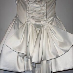 Bought it as one of my reception dress! Got so many compliments on it. Had a detachable bow! It’s dry-cleaned and ready to wear.