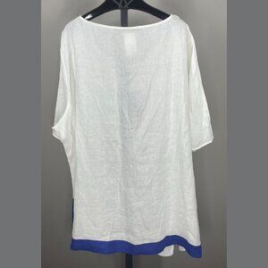 NEW Marina Rinaldi Shirt Womens 24 white blue linen loose casual vacation wear