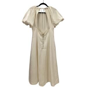 Rebecca Vallance Aimee Open Back Sateen Midi Dress In Ivory Size 8