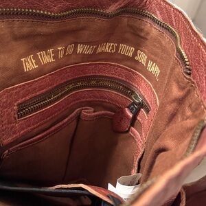 Stylish brown and cream shoulder bag with fringe detailing. Perfect for adding a bohemian touch to any outfit.