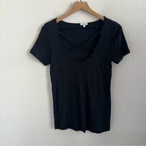 Splendid Black Crisscross Front Tee T-Shirt Neutral Elevated Basic Medium