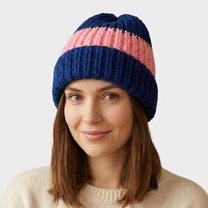 Handmade Knit Beanie Hat Purple Pink Stripe
